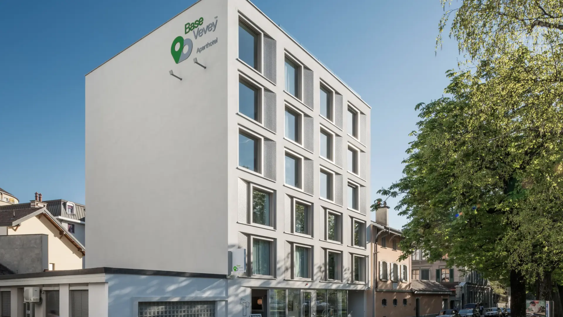 Deuxième établissement de la chaîne BASE développé par Norwood, cet appart-hôtel est idéalement situé entre le lac, la gare CFF et le centre commercial de Vevey. Le bâtiment se distingue par sa construction en matériaux durables et sa gestion respectueuse de l'environnement.