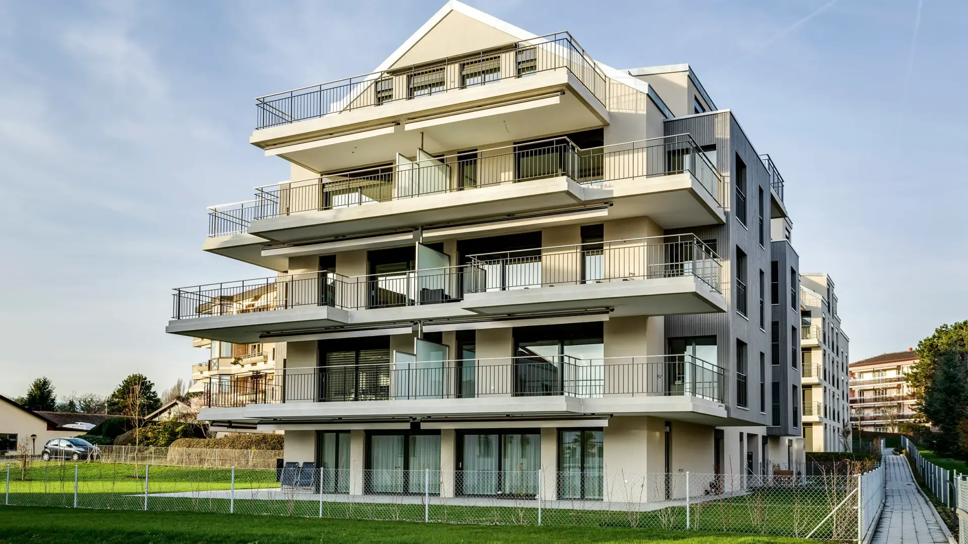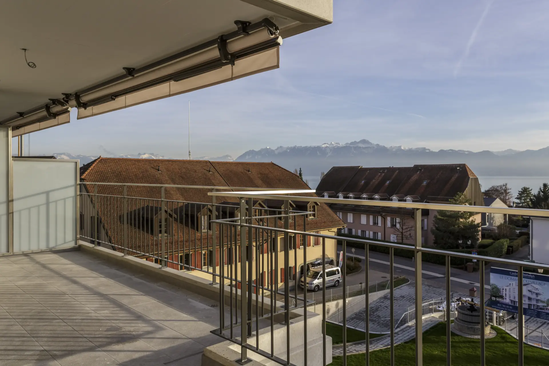 L'architecture soignée et l'orientation privilégiée des bâtiments offrent à la majorité des appartements une vue panoramique sur le lac Léman et la chaîne des Alpes, créant un cadre de vie d'exception.